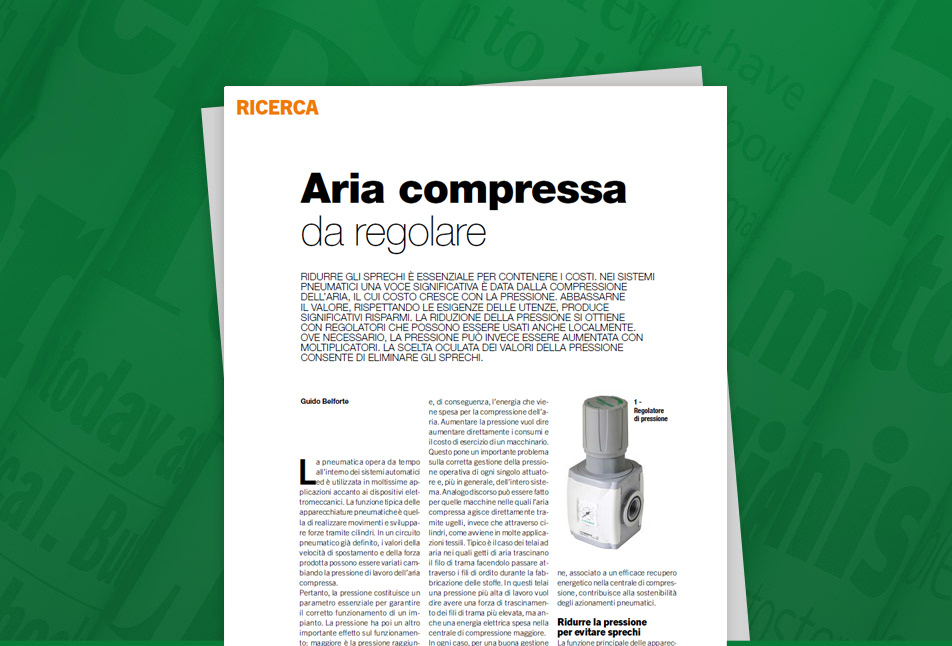Ridurre gli sprechi è essenziale per contenere i costi. Nei sistemi pneumatici una voce significativa è data dalla compressione dell’aria, il cui costo cresce con la pressione. Abbassarne il valore, rispettando le esigenze delle utenze, produce significativi risparmi. la riduzione della pressione si ottiene con regolatori che possono essere usati anche localmente. Ove necessario, la pressione può invece essere aumentata con moltiplicatori. la scelta oculata dei valori della pressione consente di eliminare gli sprechi.