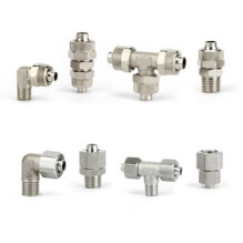Raccordi realizzati con cono di calzamento, la cui forma assicura una tenuta pneumatica perfetta una volta che il tubo è calzato ed il dado serrato adeguatamente. Disponibili in ottone nichelato ed acciaio INOX AISI 316.