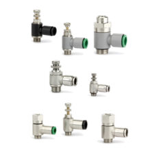 Raccordi con funzione di regolazione di flusso nella versione unidirezionale e bidirezionale realizzati in ottone nichelato, tecnopolimero e acciaio inox AISI 316L.