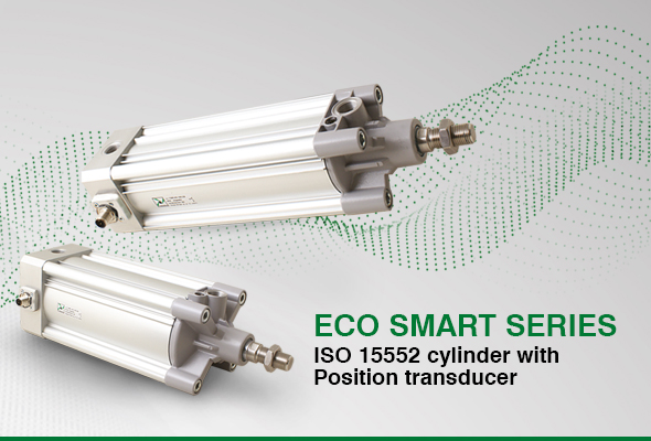 The cylinders of the Eco-Smart Series are pneumatic actuators according to ISO 15552 standard, equipped with a linear potentiometer integrated into the piston rod.