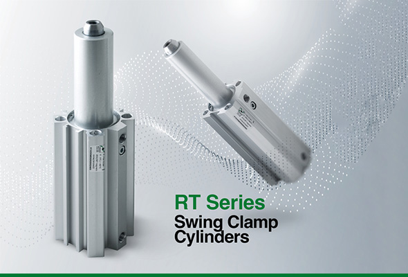 The swing clamp cylinder has been developed to meet the need to clamp a workpiece by means of a clamping arm which when released would unclamp rotate 90 degrees in order to allow unrestricted access to the workpiece; the stroke of the swing movement is 21mm.
