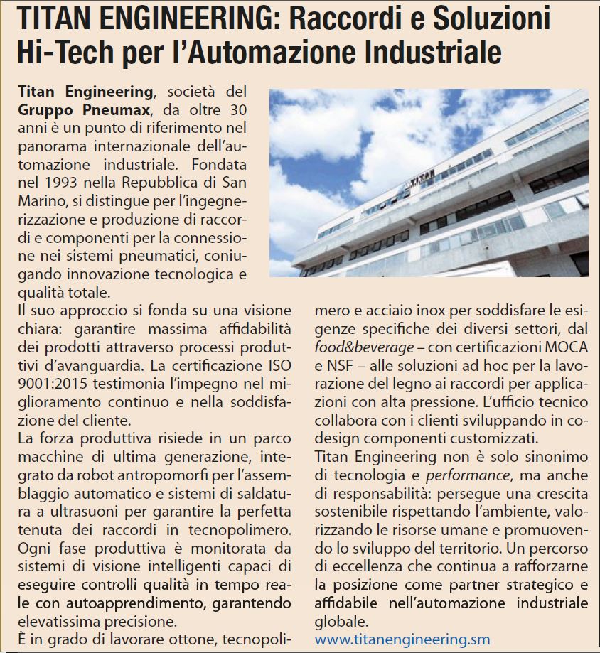 Parte del Gruppo Pneumax, quest’anno Titan Engineering compie 30 anni. Ripercorriamo i principali eventi della storia dell’azienda, dal 1993 specializzata nel campo della raccorderia pneumatica... Continua